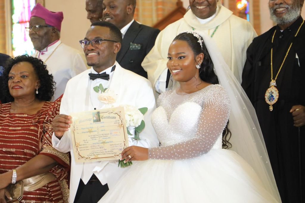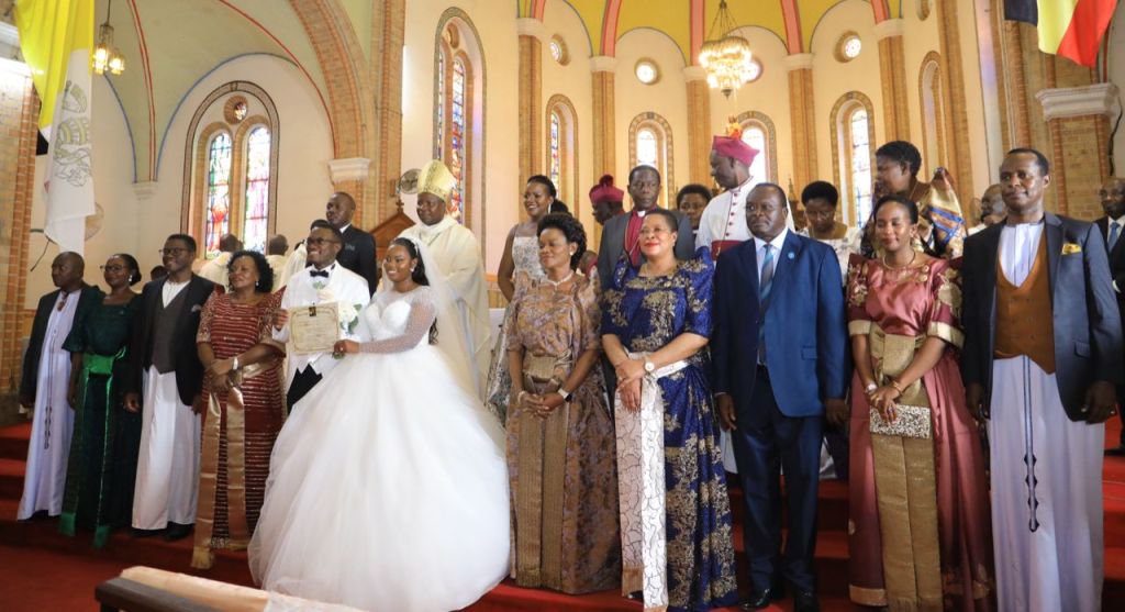 The couple was wedded by the main celebrant, Rt. Rev. Bishop of Masaka Catholic Diocese, Serverus Jjumba and witnessed by several dignitaries including Nnabagereka of Buganda, Sylvia Nagginda, Chief Justice, Alfonse Owiny-Dollo, among others.