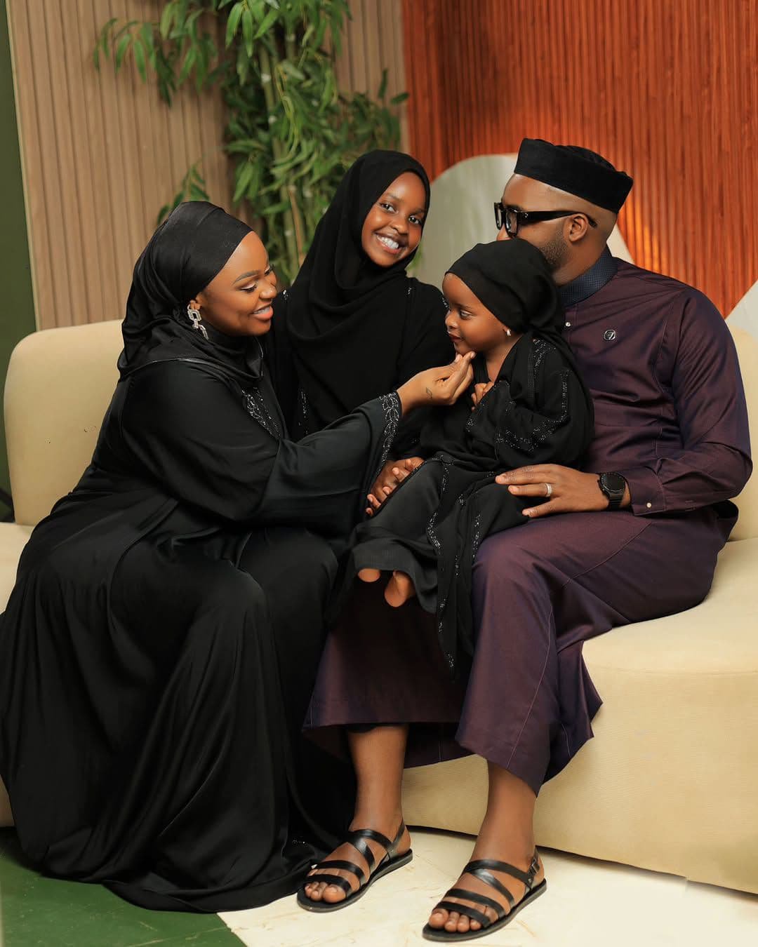 Singer Rema Namakula went for a black abaya with intricate silver detailing, along with a matching headscarf, while her babies rocked similar black outfits.
