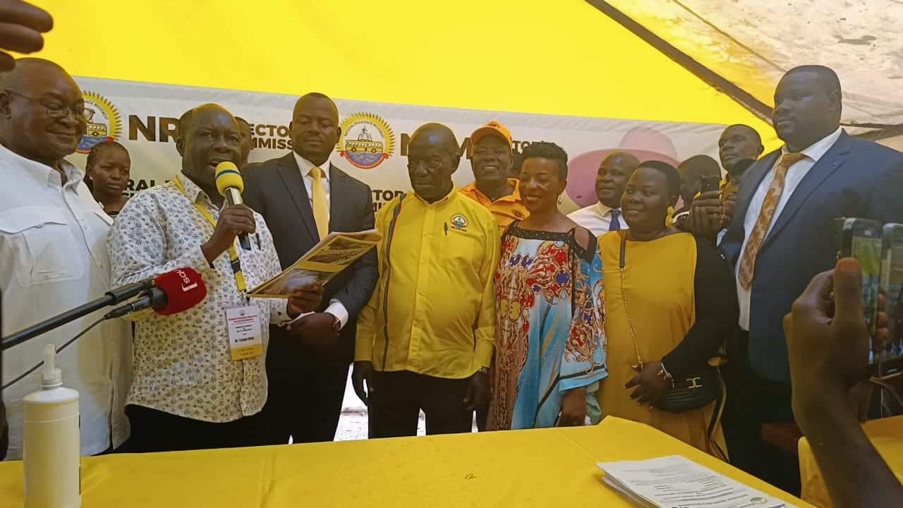 Minister Haruna Kasolo on Thursday proved that he is still leading the race for the NRM regional Vice Chairman for Buganda when he turned up at the Party’s EC head offices in Nakasero accompanied by a large crowd of supporters who included two former Vice Presidents of Uganda.