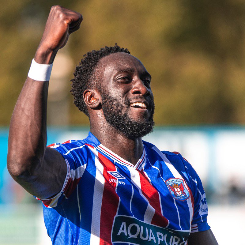 Bevis Mugabi celebrates his first ever goal at Carlisle United over Aldershot Town in the Enterprise National League.