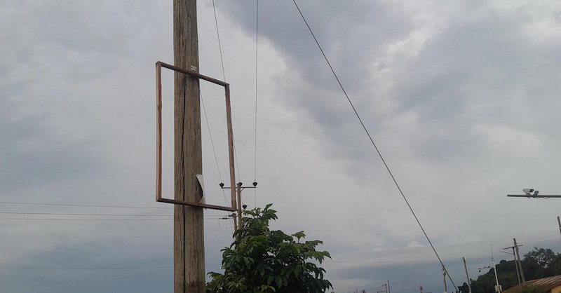 Museveni’s poster plunked off on an electric pole along Majanji road